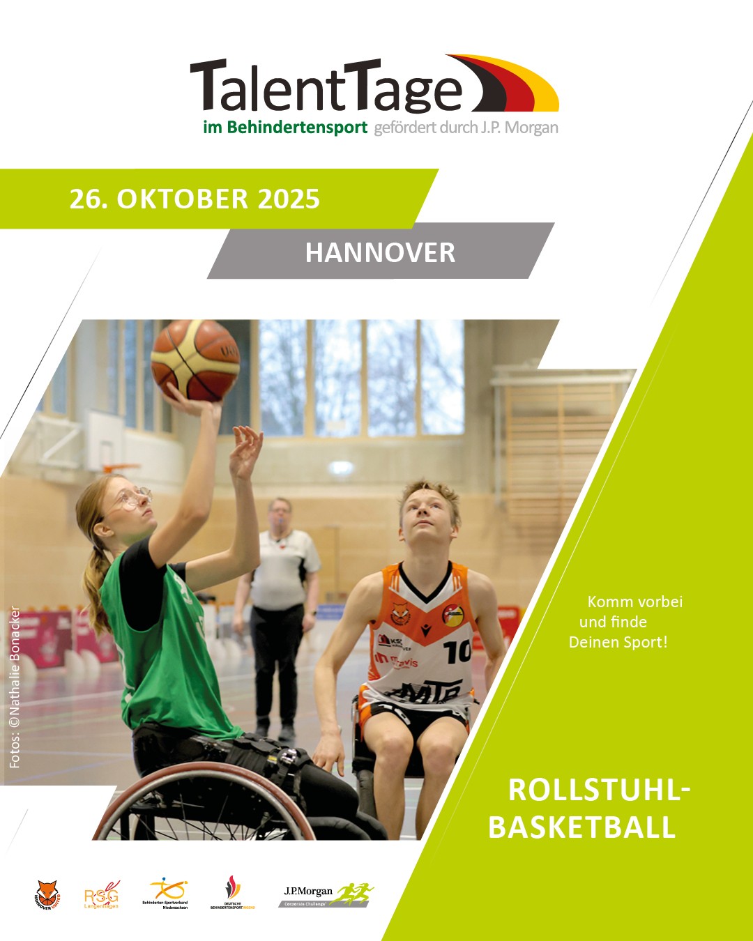 Du möchtest die Sportart Rollstuhlbasketball ausprobieren oder deine Kenntnisse erweitern? Dann bist du beim TalentTag Rollstuhlbasketball genau richtig!