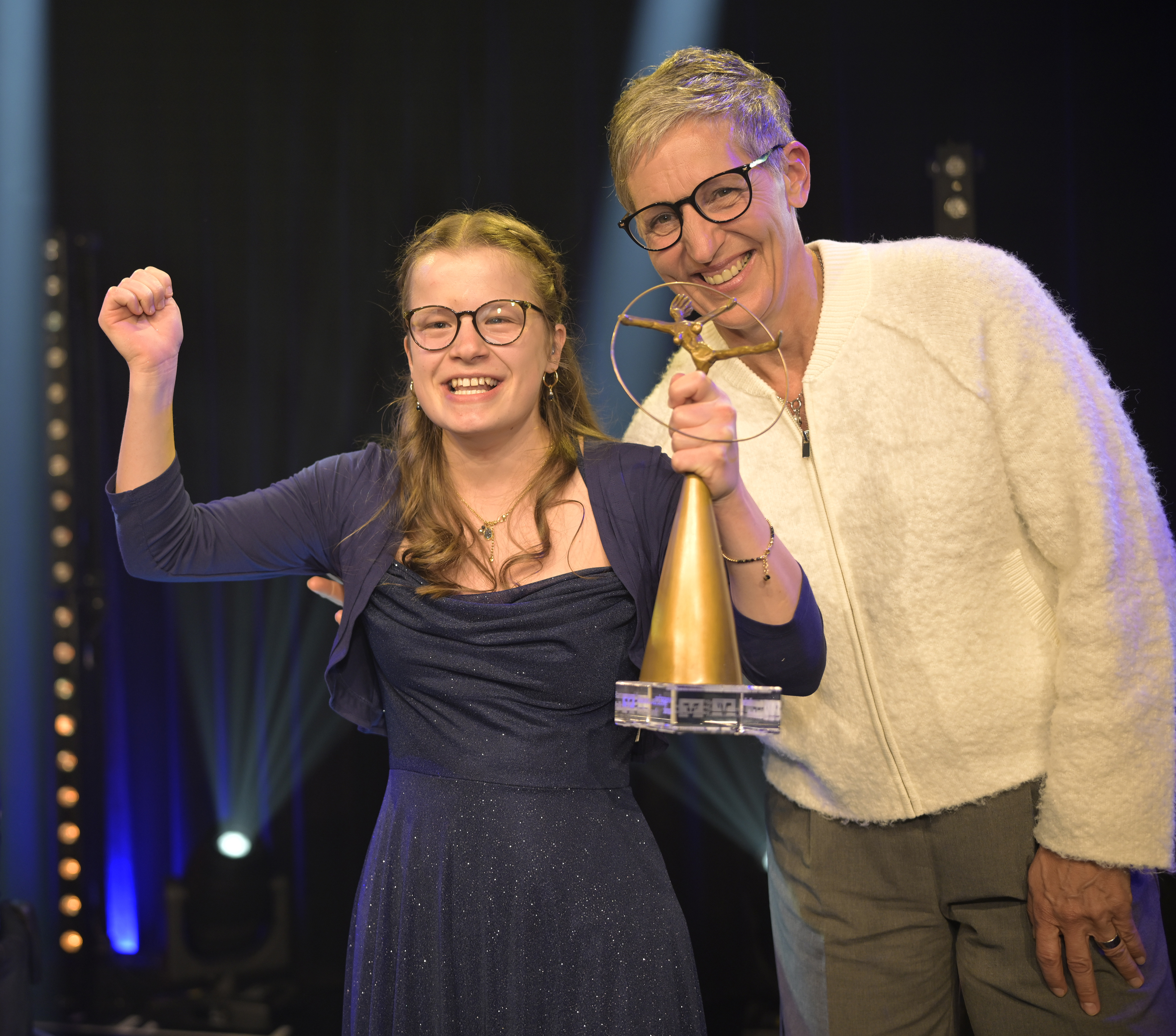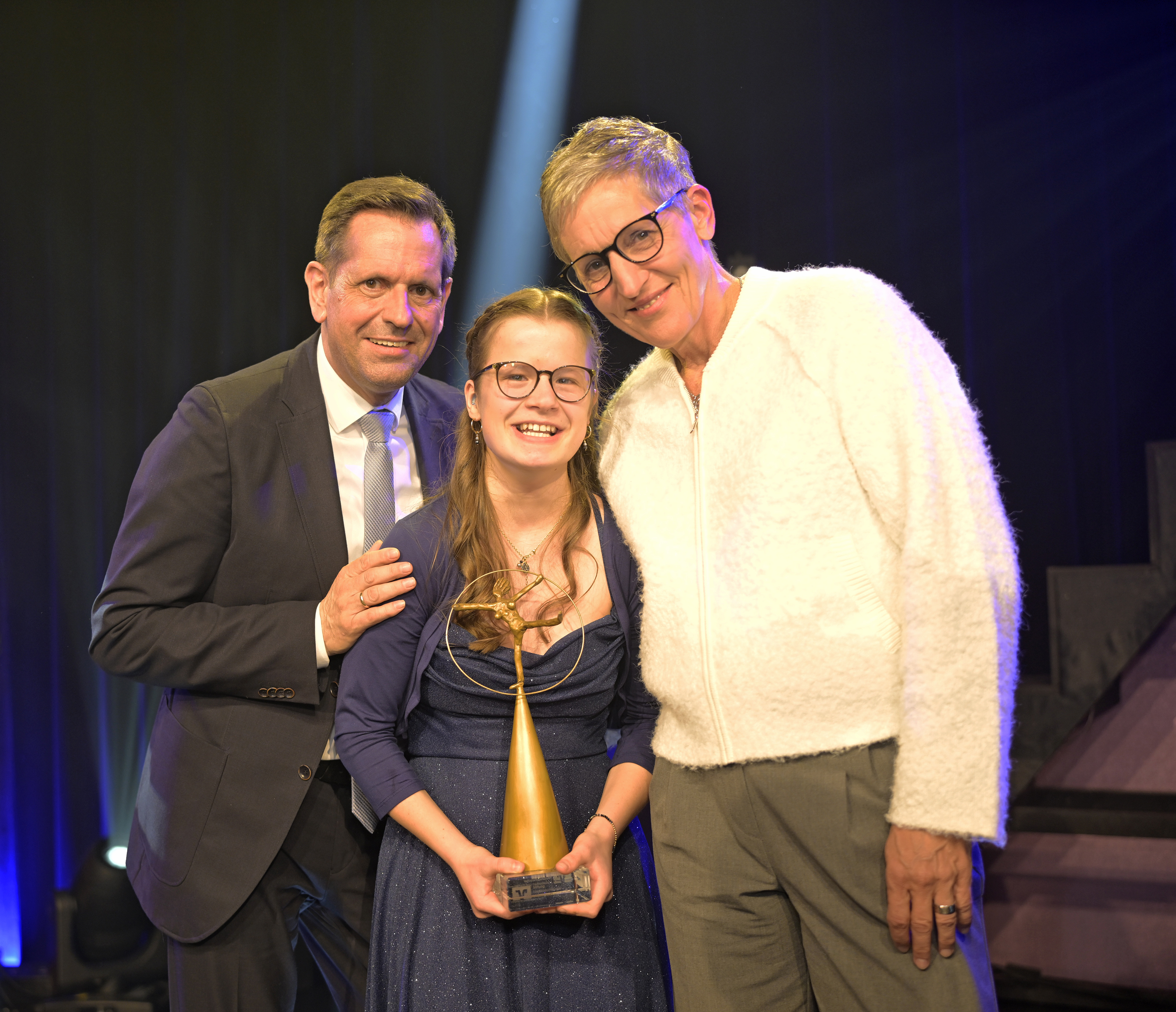 Sichtlich bewegt und mit einem strahlenden Lächeln im Gesicht erhielt sie die Siegestrophäe aus den Händen von Ministerpräsident Olaf Lies im Beisein von BSN-Präsident Karl Finke sowie Ruderlegende und Laudatorin Kathrin Boron. Unter großem Beifall der 230 geladenen Gäste und im Konfettiregen auf der GOP-Bühne nahm sie die Skulptur freudestrahlend entgegen.